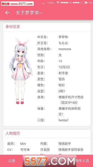 《名为梦梦奈的servant破解版》是一款专为广大宅男量身定制的萝莉壁纸软件,此版本已破解为免费版,无需注册即可使用!全新的功能,为你带来一场全新的壁纸体验!【名为梦梦奈的servant怎么玩】1.梦梦奈触碰有反应的地方为:头,脸,左右手臂,欧派,肚肚,XX。腿目前没有哦。2.如何移动梦梦奈呢?2根手指按住梦梦奈移动,就可以移动了。一根不可以哦。3.背景可以换了哦,6个里面4个是床哦。4.语言分两种哦,在有人的地方调戏可以换日语哦。语音还可以关掉哦。5.梦梦奈如果被移动到了奇怪的地方,打开软件可以重置位置哦。【特别说明】“名为梦梦奈的servant”是最近兴起的新邪教――“梦梦奈”的软件全名,也是官方的正式名称,其他如“核桃助手梦梦奈”“虚拟助手梦梦奈”都是等同款应用都是非法搬运的,请各位仔细辨别。(核桃助手是梦梦奈的官方没错,但是核桃助手梦梦奈是非法搬运请注意区分)【名为梦梦奈的servant攻略】那么梦梦奈是什么呢?梦梦奈是一只很萌很萌的小萝莉哦,可戳可调戏!这款软件是以虚拟助手为走向的动态壁纸类免费软件,采用live2d技术,只要轻轻触碰特定部位,梦梦奈就会有很多不同的反应哦!超可爱超激萌!以后更是会增加闹铃、提醒等多种助手功能,赶快下载一个,把梦梦奈领回家吧~展开