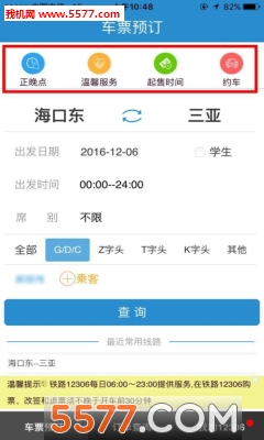 火车票选座位手机软件专为2017年春节回家的用户打造,以网上购买火车票为题材内容,在传统网上火车票购买软件基础之上加入了独特的可选座位版本,用户你可以通过软件购买火车票并选择座位,你来使用吧!【软件功能】2017年春运火车票开售在即,12306铁路官网售票本月起再次优化,旅客期待已久的网上购票“选座功能”终于实现了。目前,该功能正在海南环岛高铁试行,电脑和手机APP均可购买。同时,12306手机APP新增了查询正晚点信息、约车等4大功能。五个座位可选 靠窗和过道标明位置在电脑上登录12306中国铁路客户服务网站在提交订单后,系统会弹出核对信息对话框。按照以往的操作,旅客只要确认无误,就可以直接点确定,然后进入付款程序。优化后的12306的核对信息对话框中出现新功能――“选座喽”的黄色字体提示用户可以选座位。根据提示,旅客可选“ABCDF”五个位置,其中A、F靠窗,C、D靠过道。不过系统提示,选座后如果系统票额不足,系统将随机为您申请席位。“目前,选座功能率先在海南环岛高铁试水,今后该服务将逐步普及到其他铁路线路。”一名铁路负责人表示。旅客希望尽快开通卧铺选座功能旅客对于网络购票选座功能开放已经呼吁了多年,特别是卧铺车票的选择最受关注。铁路部门曾表示,12306在设计时具备选座功能,但是经过多次升级一直都未开放。在不断的呼吁下,2014年12306售票系统优化,可以为60岁以上老人自动优先安排下铺,系统还提供了自动默认一张订单中的几个人邻座的分配方式。但在春运等票额紧张的情况下,这种分配也不能完全保障。海南高铁选座功能的开放,让很多旅客看到了希望,呼吁铁路部门尽快开放列车卧铺选座功能,让老人、孩子乘车可以方便一些。一名铁路负责人表示,“随着选座功能启用,卧铺席位选座在技术上也可以实现和操作,但还需整体规划和统筹安排。”12306手机APP上线4大新功能与此同时,12306手机APP也上线了4大新功能。在手机APP首页上方增加了“正晚点”、“温馨服务”、“起售时间”、“约车”四个功能按钮。APP新增4大功能其中,“正晚点”可查询过去1小时和未来3小时内列车正晚点信息;“温馨服务”可提供重点旅客预约、遗失物品查找、质量服务投诉、网络购票投诉、建议及客服电话查询等服务;“起售时间”可查询各地火车站的售票时间。此外,“约车”则使用户在购买火车票时,可直接预约车辆,实现出行“无缝衔接”。点击“约车”后,用户可选择用车时间、出发点和目的地,然后输入手机号码并进行验证,最后点击下单。【软件特色】“铁路12306”是中国铁路客户服务中心推出的官方手机购票应用软件,与www.12306.cn网站共享用户、订单和票额等信息,并使用统一的购票业务规则,软件具有车票预订、在线支付、改签、退票、订单查询、常用联系人管理、个人资料修改、密码修改等功能,为旅客提供方便快捷的手机购票全新体验。1.本软件为官方购票软件,数据及时准确,交易安全可靠。2.与www.12306.cn网站购票功能保持同步,可在手机和网站之间交叉办理购票、退票、改签等业务。3.支持工商银行、农业银行、中国银行、建设银行、招商银行、中国银联、中铁银通卡、支付宝支付。展开