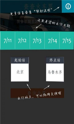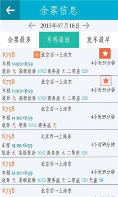 查查火车票是一款为出行用户提供火车票余票情况查询的应用,数据同步12306官网,准确及时,同时提供火车票订购功能,是你出行的好帮手。【软件功能】- 数据来自官网12306.cn,及时查询,信息准确。- 正式版界面进行了全新的设计,增加了很多人性化的功能,如交换起始站点,查询结果排序等等。- 不仅可以查询余票,票价等还以电话订票。【操作说明】1.可以通过拖拽,交换“起始站”和“终点站”2.除中文站名外,还可用“汉语拼音”或“站名首字母”来查询站点【版本说明】v1.9.1更新内容:修复若干用户反映的小问题 你有什么好的建议,快告诉我吧!展开