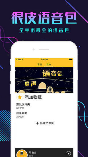 很皮语音包app是一款很好用的游戏语音助手,这里的语音种类很多,各种声音都有,还有搞笑的效果哦,一键就能轻轻松松改变你的声音,是不是很神器呢?想要试试的朋友快来免费下载体验吧。 很皮语音包软件介绍: 支持6种声音特效:萝莉,大叔,回声,外星人,机器人,快速,慢速 支持2种声音背景:恐怖小屋,暴风雨 原理:使用WeChat Voice改变你的声音 微信变声器:无论你是想装可爱还是恶搞,WeChat Voice一键帮你做到 很皮语音包软件特色: 1.变声器硬件,即通过硬件实现变声的工具,譬如,知名动画名侦探柯南中,柯南侦破案件时扮演毛利小五郎时,使用的蝴蝶结,就是一种变声器,柯南正是通过这一蝴蝶结,模拟成毛利小五郎的声音,进行案件侦破的,这一变声器可称之为蝴蝶结变声器。 2.变声器软件,即通过软件实现变声的工具,软件类变声器,运行平台皆为电脑系统。 3.变声器是通过改变输入音频的音色、音调,并将变声后的音频输出的工具。 4.根据变声器材质不同,变声器分为变声器硬件和变声器软件。 很皮语音包软件亮点: 1.多种预设变声轻松变 2.自定义变声千变万化 3.添加背景音乐,更搞怪 4.分享到微信让朋友们听听你的杰作 5.升级背景音效库 6.优化变声功能与预设变声参数