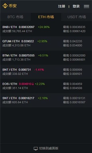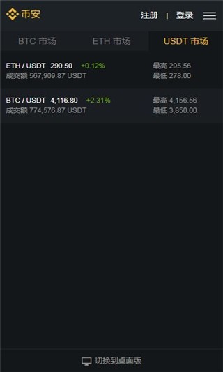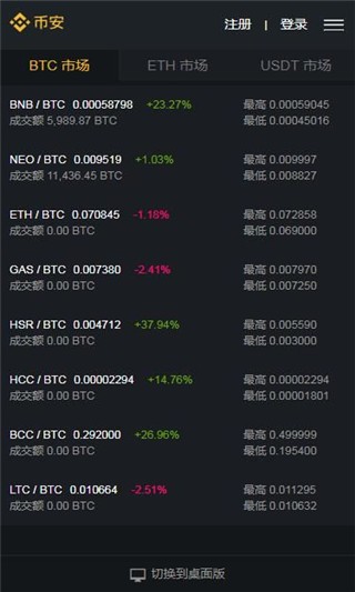 币安交易所平台是一款提供多种币资讯的交易客户端应用,币安网app提供专业的行情动态,安全透明,并且还能自由选择语言等,非常的便捷。币安交易平台是由赵长鹏(CZ)领导的一群数字资产爱好者创建而成的一个专注区块链资产的交易平台。为用户提供更加安全、便捷的区块链资产兑换服务,聚合全球优质区块链资产,致力于打造世界级的区块链资产交易平台。功能介绍安全稳定多层、多集群系统架构高性能高达140万单/秒的高性能撮合引擎技术高流动性丰富的资源和众多的合作伙伴为平台提供流动性全平台覆盖支持Web、iOS、Android、H5、微信、PC客户端多语言支持提供世界范围内多种主流语言支持多币种支持BTC、ETH、LTC、BNB等(不支持法定货币)软件特色1.行情查询:实时了解比特币、莱特币、以太坊(ETH)价格波动。2.K线图查看:提供多种专业的比特币、莱特币、以太坊(ETH)走势图。3.价格预警:自定义价格预警,实时关注市场价格变动,自动触发预警。4.通知栏行情:无需开启App,下拉就能看行情。5.矿池份额:实时掌握算力分布。6.区块数据:实时查看比特币网络状态。